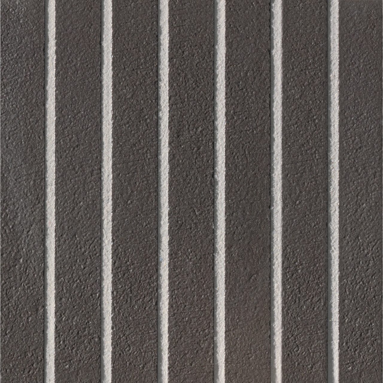It is a tile divided into a series of parallel segments of two widths, which are engraved into the surface. The pronounced grout joints form a brick, or mosaic design – depending on the colour of the grout used, either tonal or contrasting, the end result changes significantly